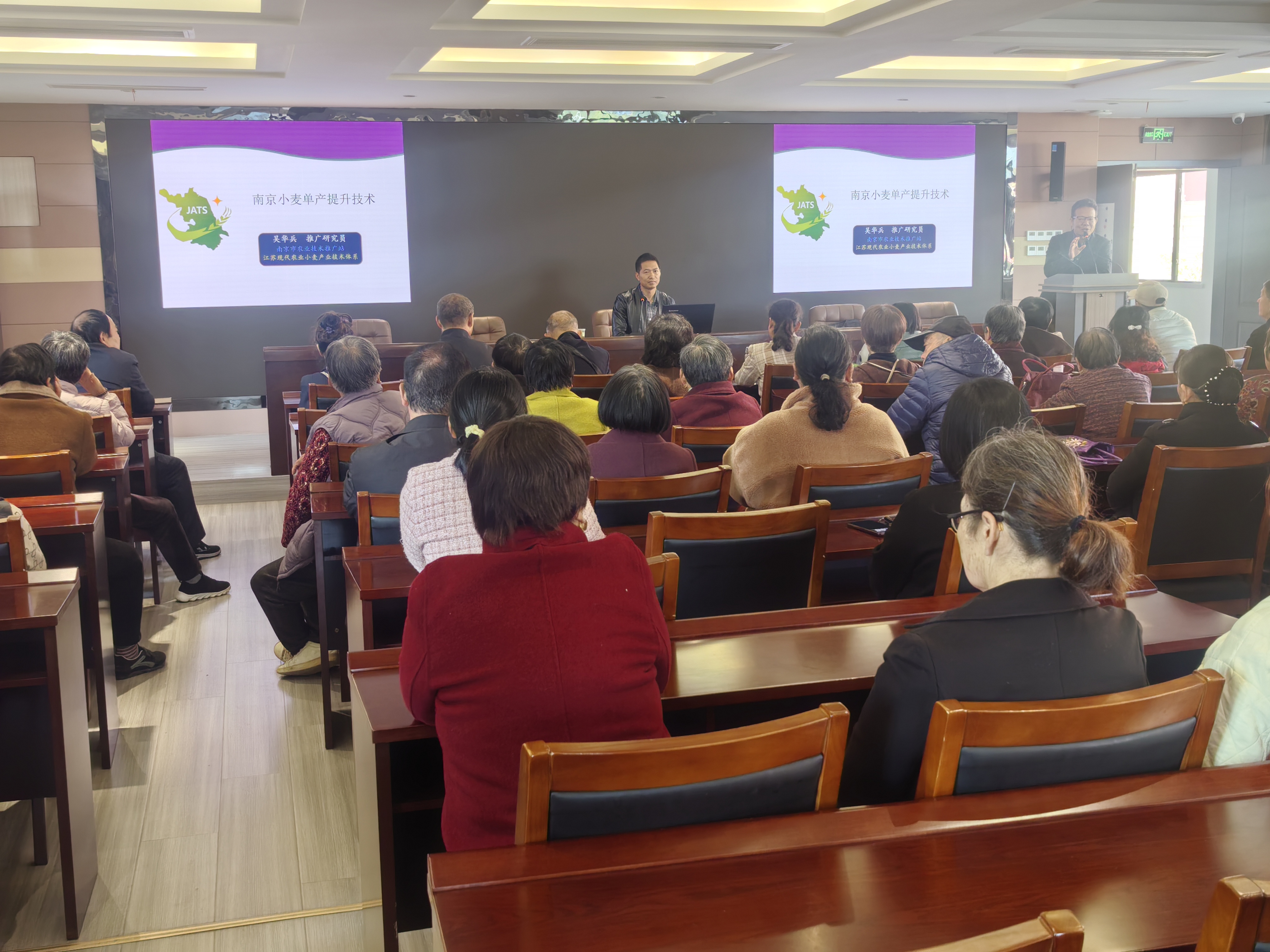 吴华兵研究员结合南京地区气候特点与生产实际,首先系统梳理了小麦从播种到收获各阶段的关键技术。他强调,“七分种、三分管”是小麦高产的基础,并围绕“播种出苗”“春季田管”“后期管理”三大环节展开详细讲解。